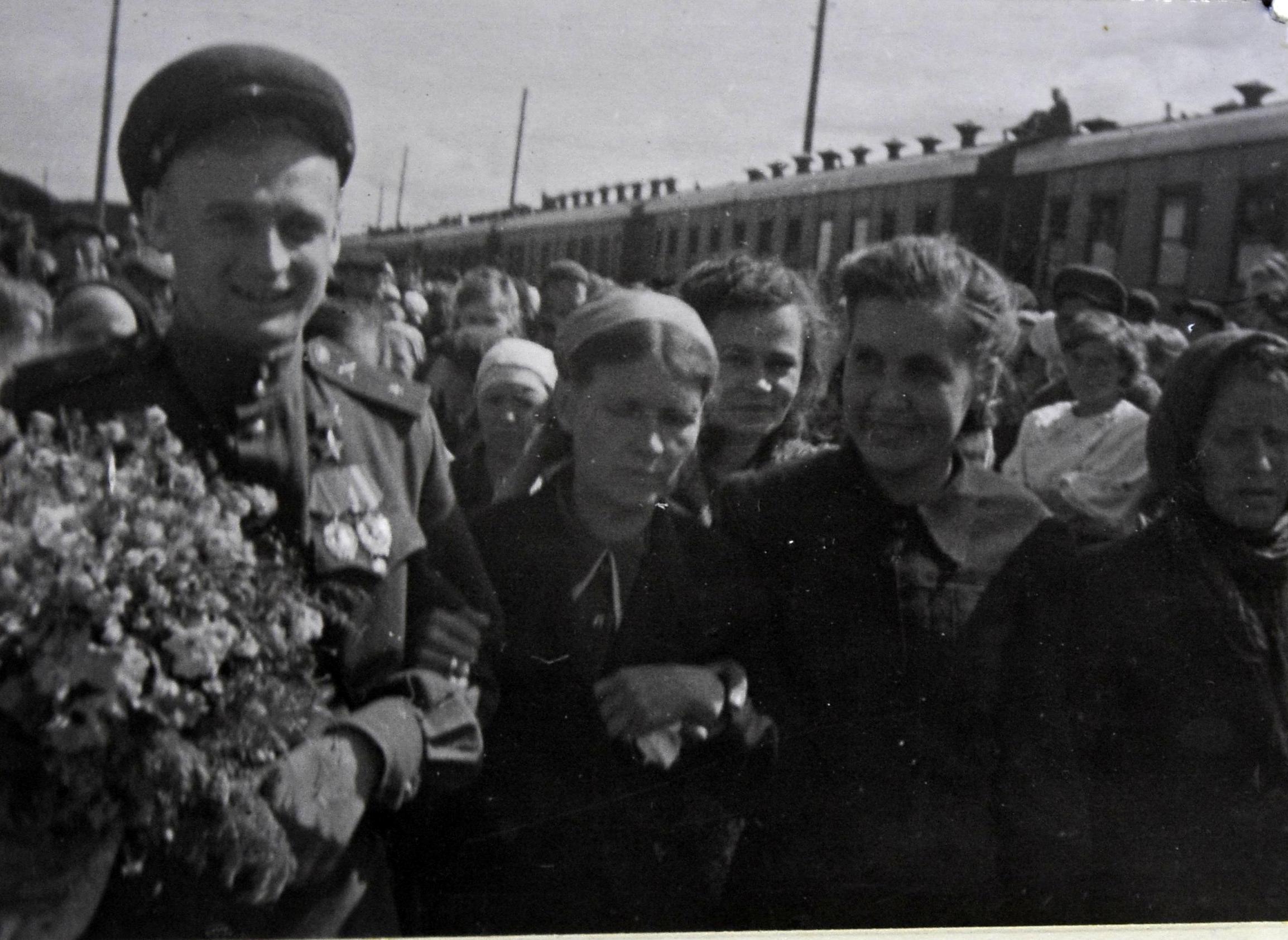 Встреча демобилизованных бойцов Красной Армии. 1945 год. ГАСО. Ф. Ф-1. Оп. 50. Д. 43а.