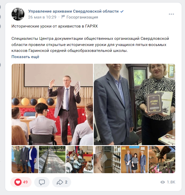 Архивной службой Свердловской области на протяжении 2023 года проводятся и планируются памятные, информационные и культурно-массовые мероприятия с использованием архивных документов из госархивов Свердловской области, иллюстрирующих многовековую историю Пелымского края и Гаринского городского округа.
