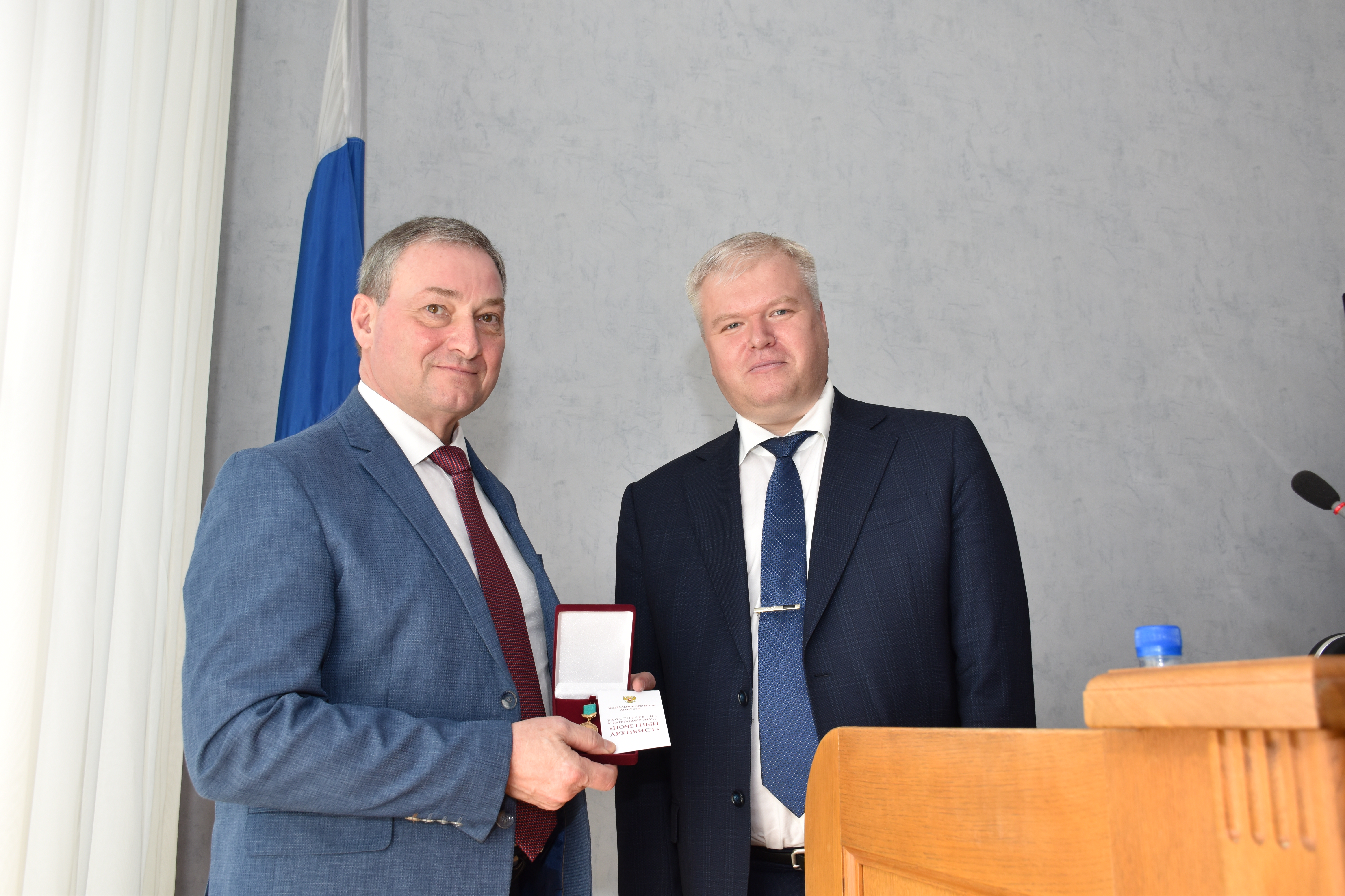 Ефименко Андрей Русланович вручил Председателю Государственного комитета по делам архивов Челябинской области Сергею Михайловичу Иванову знак отличия Федерального архивного агентства «Почетный архивист».