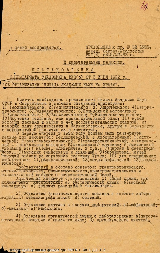 Выставка архивных документов «Уральское отделение Российской академии наук в советский период отечественной истории»