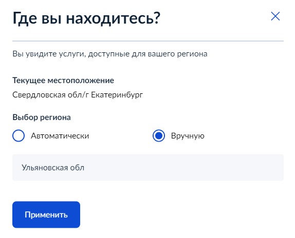 Если Вы находитесь в Свердловской области и хотите получить слугу в ином регионе, то вводите интересующий Вас регион.