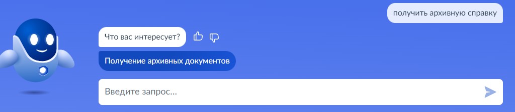 Шаг 3. С помощью робота Макса необходимо ввести запрос «Получение архивных документов» и перейти по ссылке