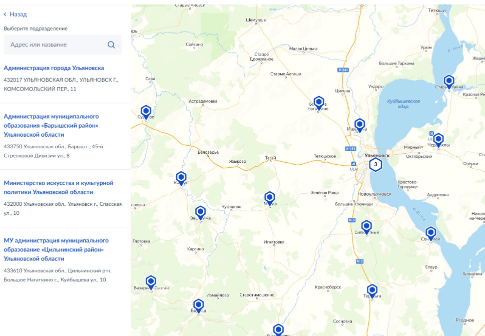 Шаг 5. В процессе заполнения интерактивной формы на карте необходимо выбрать интересующую архивную организацию
