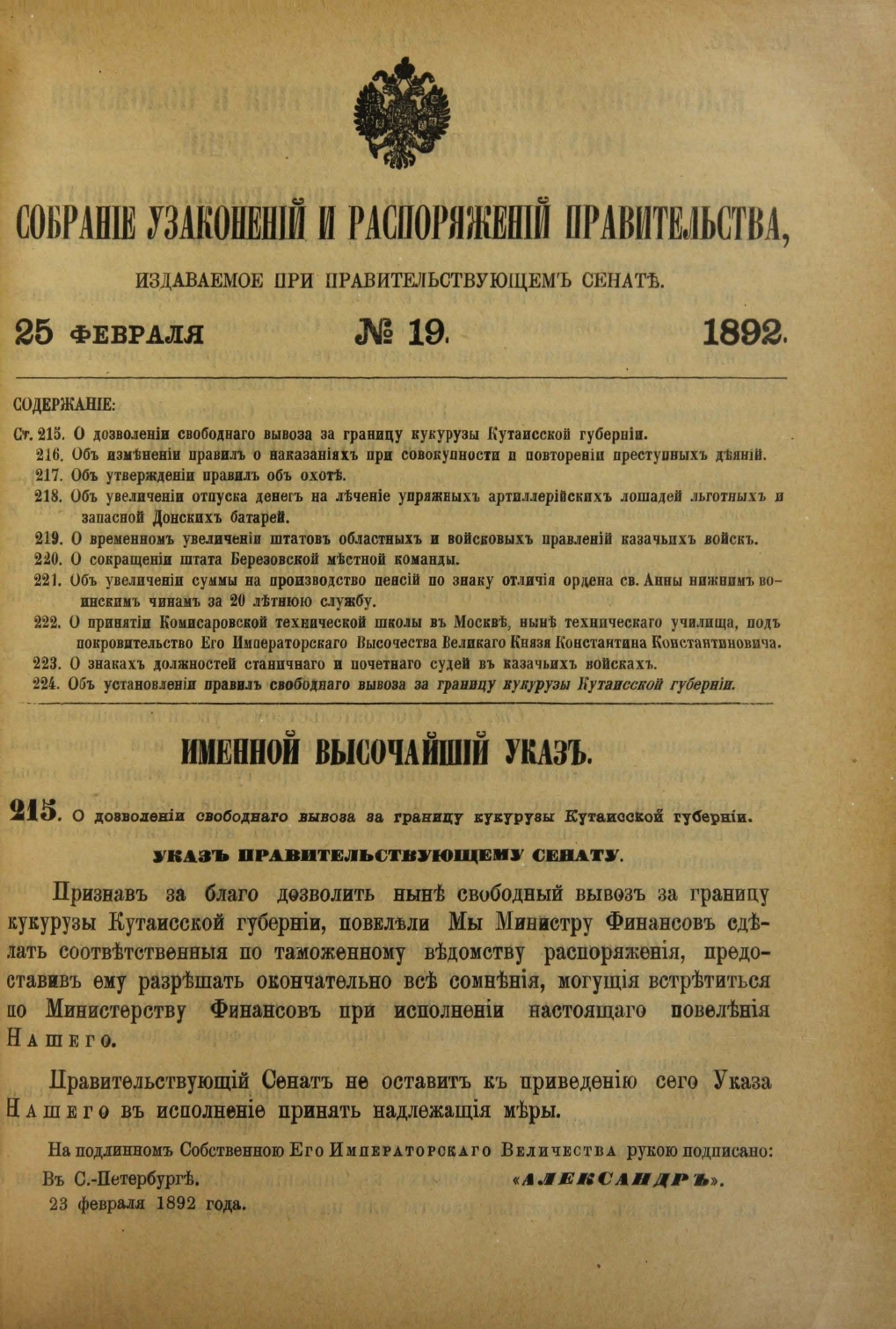 Высочайше утверждённое Мнение Государственного Совета Российской Империи от 03.02.1892 «Об утверждении правил об охоте» // Собрание узаконений и распоряжений правительства, издаваемое при Правительствующем Сенате. 1892. № 19 (25 февраля). Ст. 217. С. 422-430.ГАСО