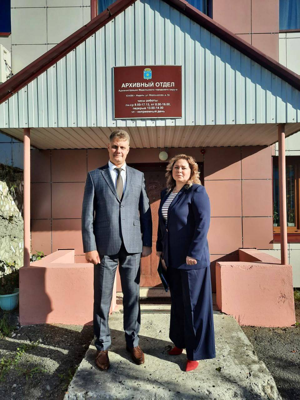 В Ивделе, самом удаленном и северном городе области, состоялась рабочая встреча Романа Сергеевича Тараборина, Начальника Управления архивами Свердловской области, и Ольги Викторовны Меньшиковой, заместителя главы администрации Ивдельского городского округа. Были обсуждены вопросы, связанные с текущим состоянием архивной сферы в городском округе, в частности, достигли договоренности о выделении дополнительных помещений для хранения документов архивного отдела администрации Ивдельского городского округа.